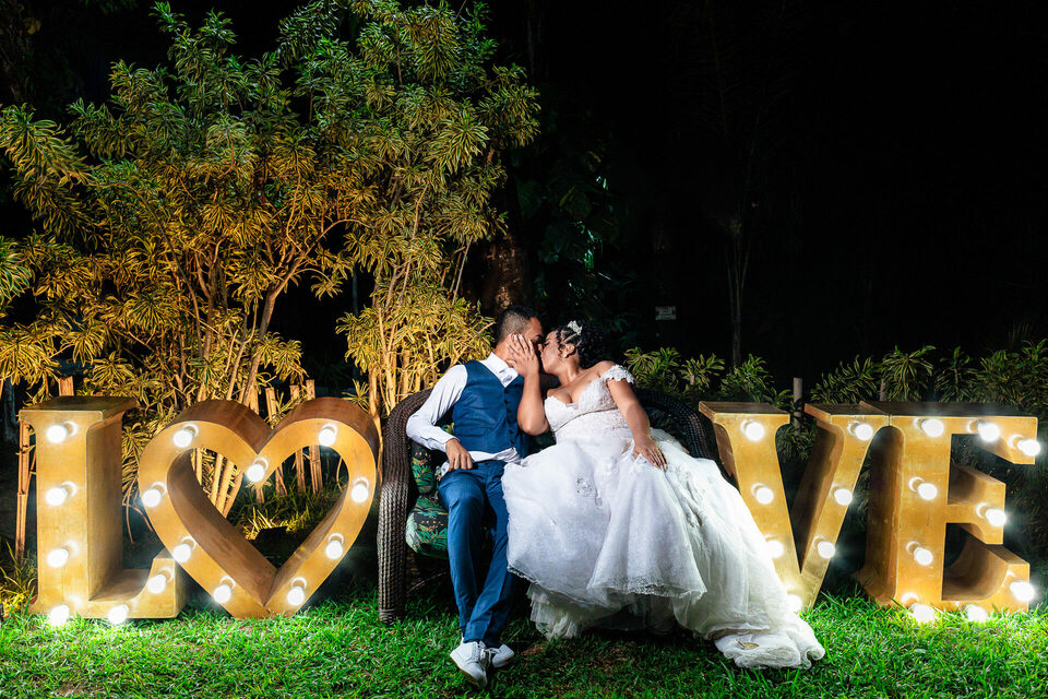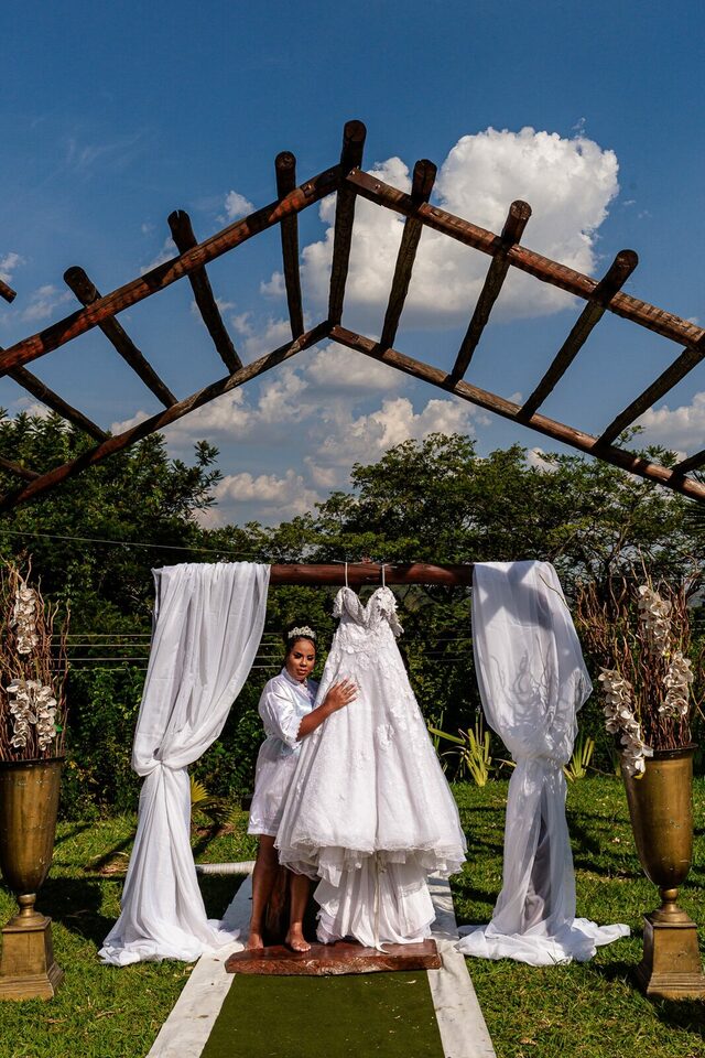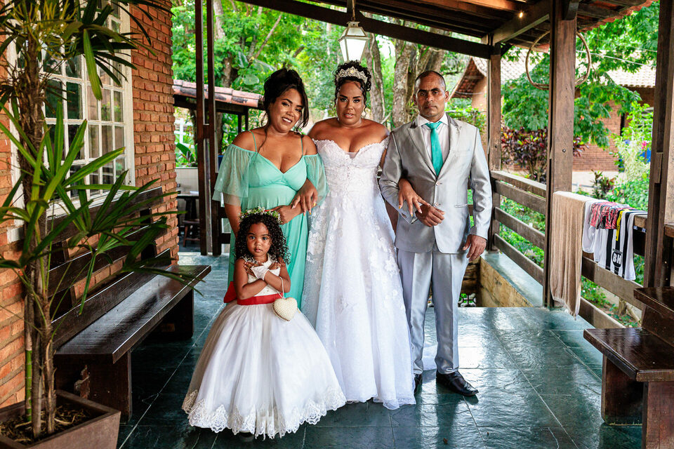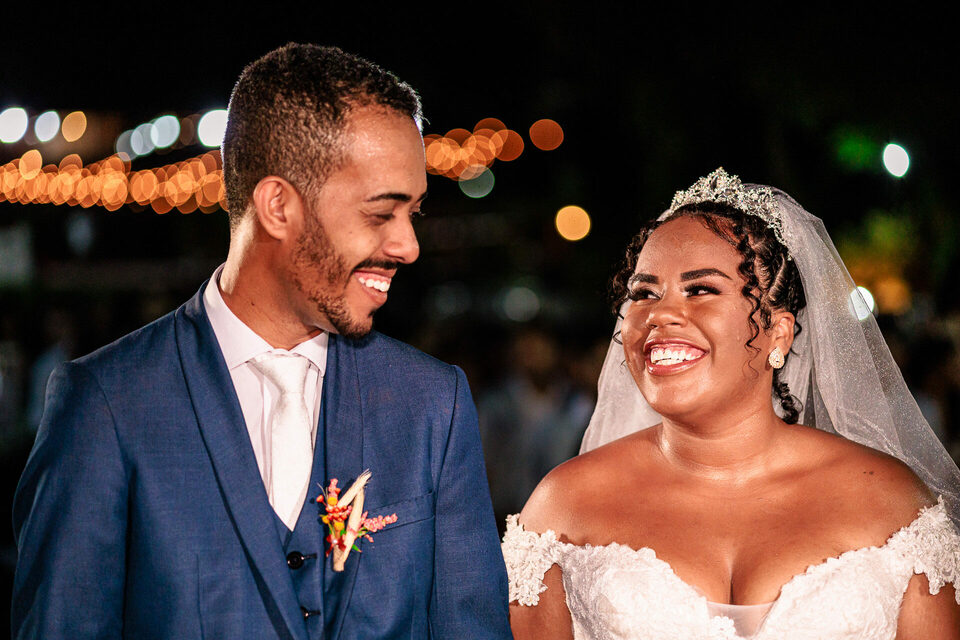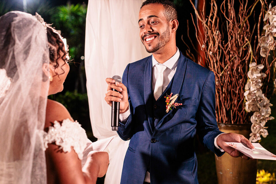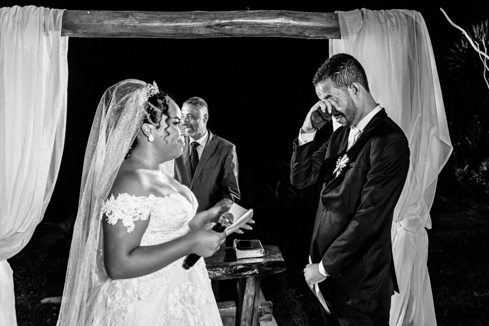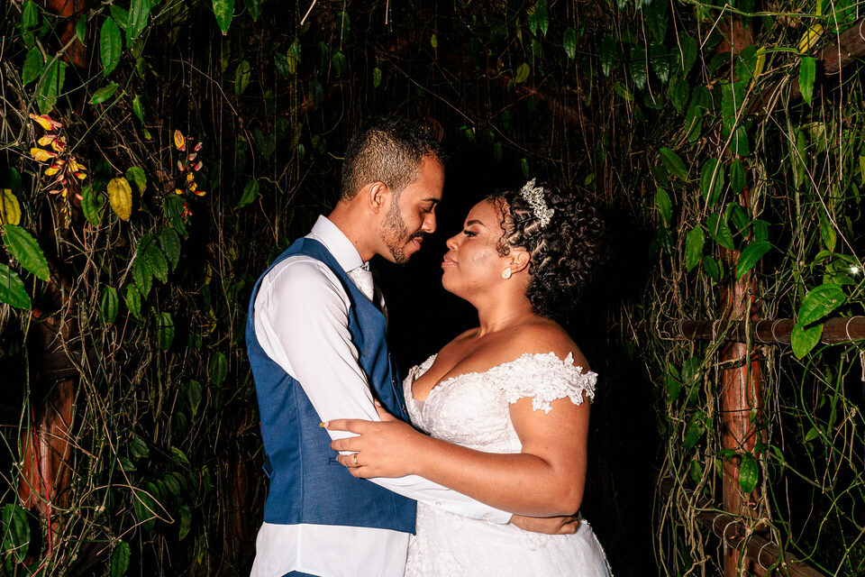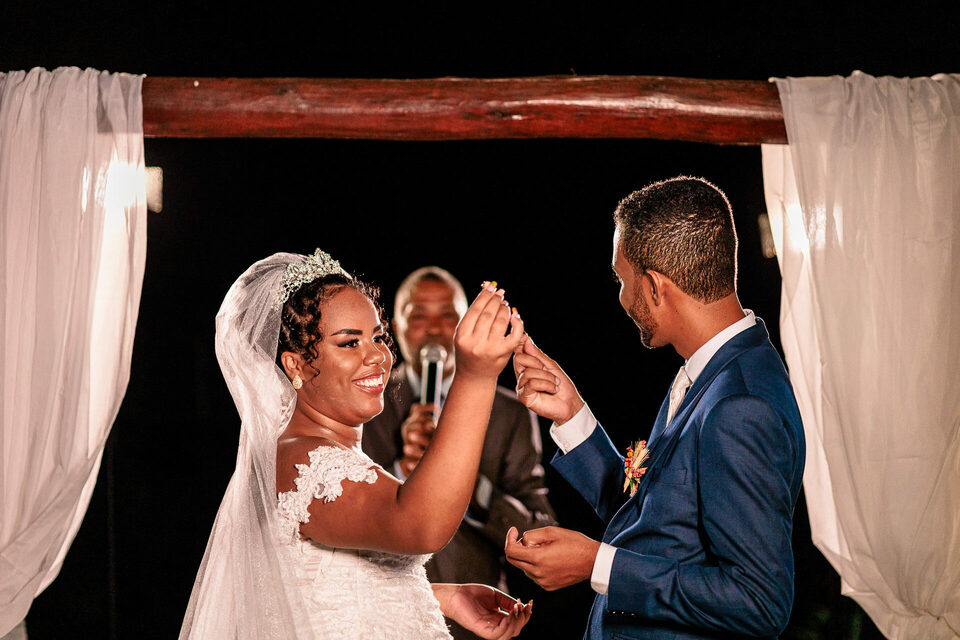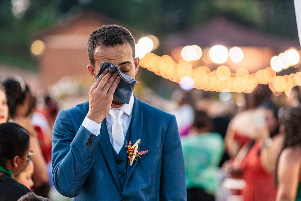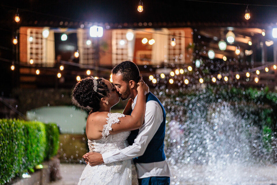 A cerimônia ao ar livre foi uma fusão de sentimentos genuínos e uma atmosfera única. Cada voto trocado, cada olhar compartilhado, foi imortalizado em meio à natureza exuberante que os cercava. Na saída, os padrinhos criaram um corredor mágico com sparkles, iluminando o caminho dos recém-casados de maneira espetacular, transformando o momento em uma cena digna de um filme romântico.