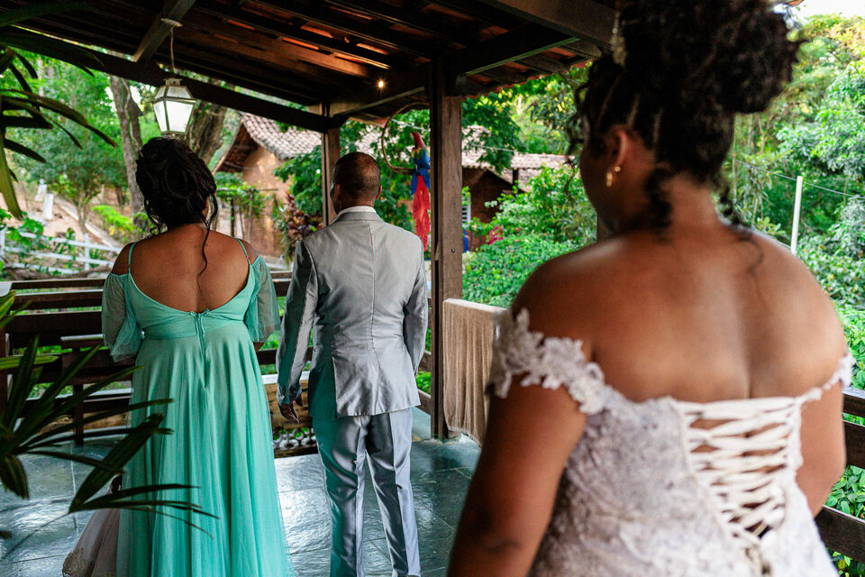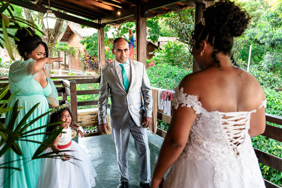 Antes da cerimônia, Ana Luiza presenteou seus pais com um "first look", um instante de pura emoção ao vê-la vestida de noiva pela primeira vez. As lágrimas nos olhos dos pais testemunhavam o quão especial aquele momento era para eles.