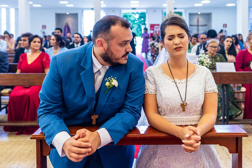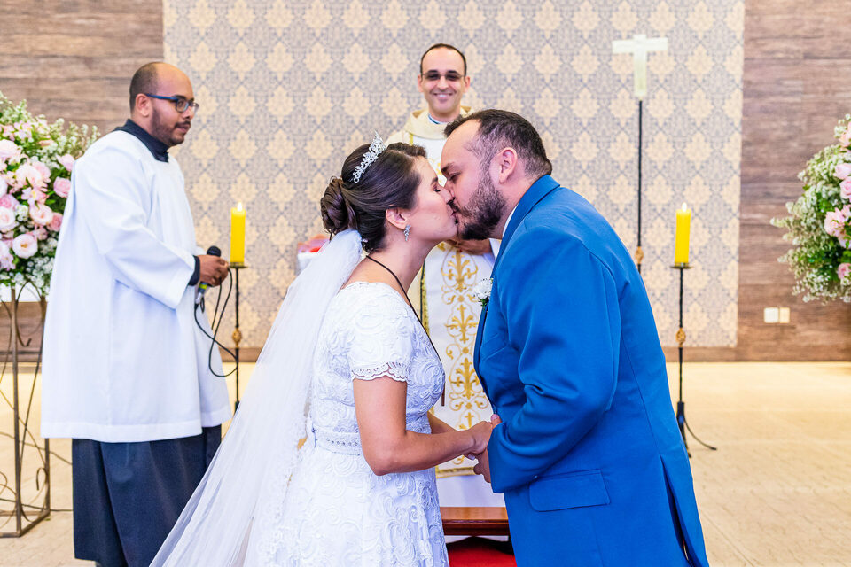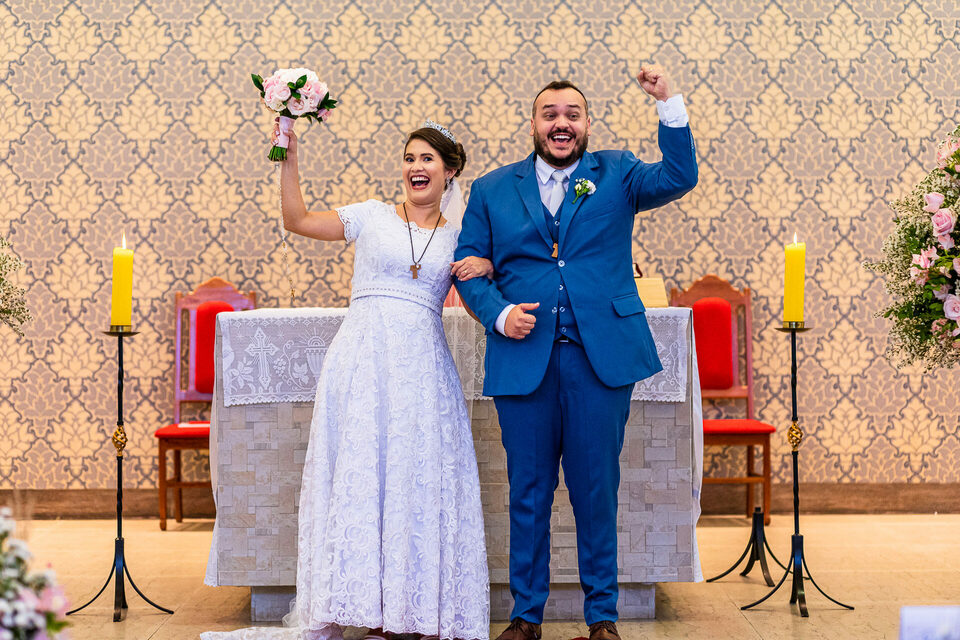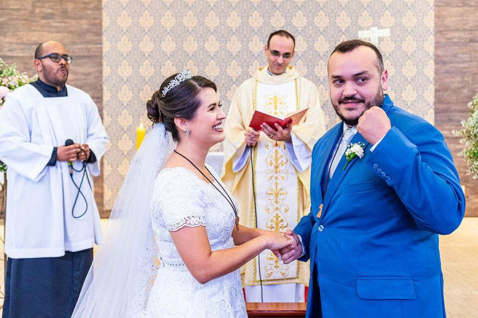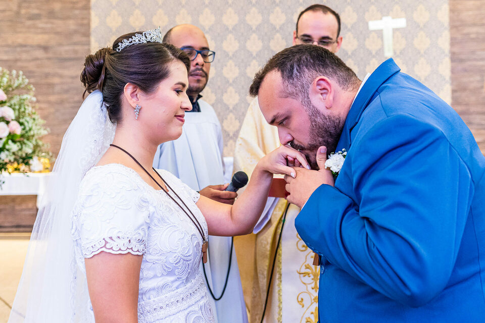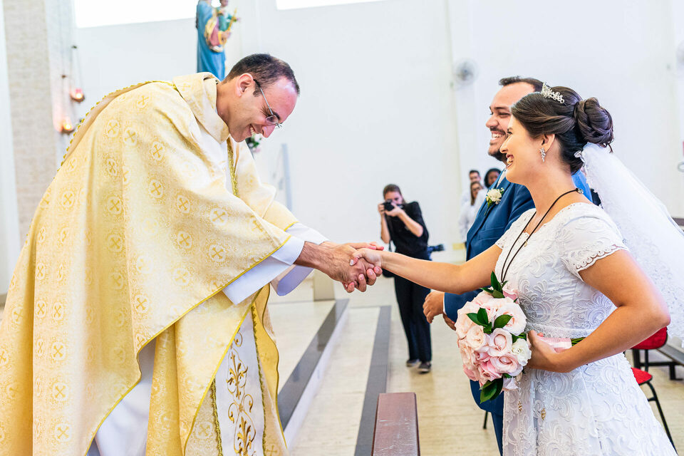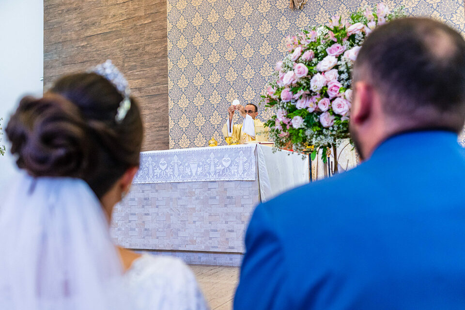 A cerimônia de casamento foi linda, dentro da Santa Missa e por uma graça especial, o evangelho do dia foi justamente as Bodas de Caná. É maravilhoso ver como Deus cuida de cada detalhe.