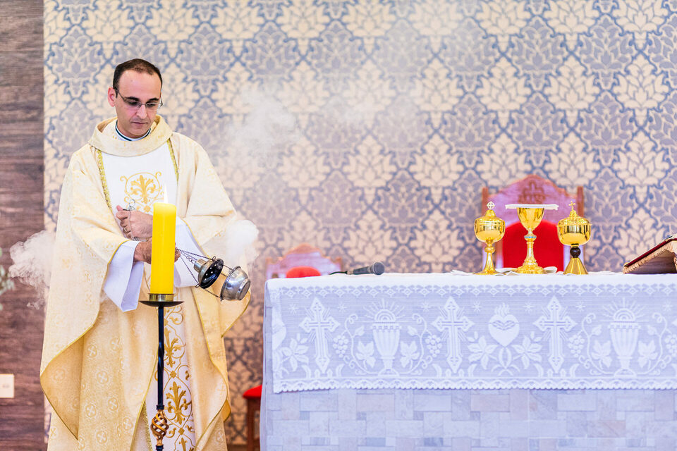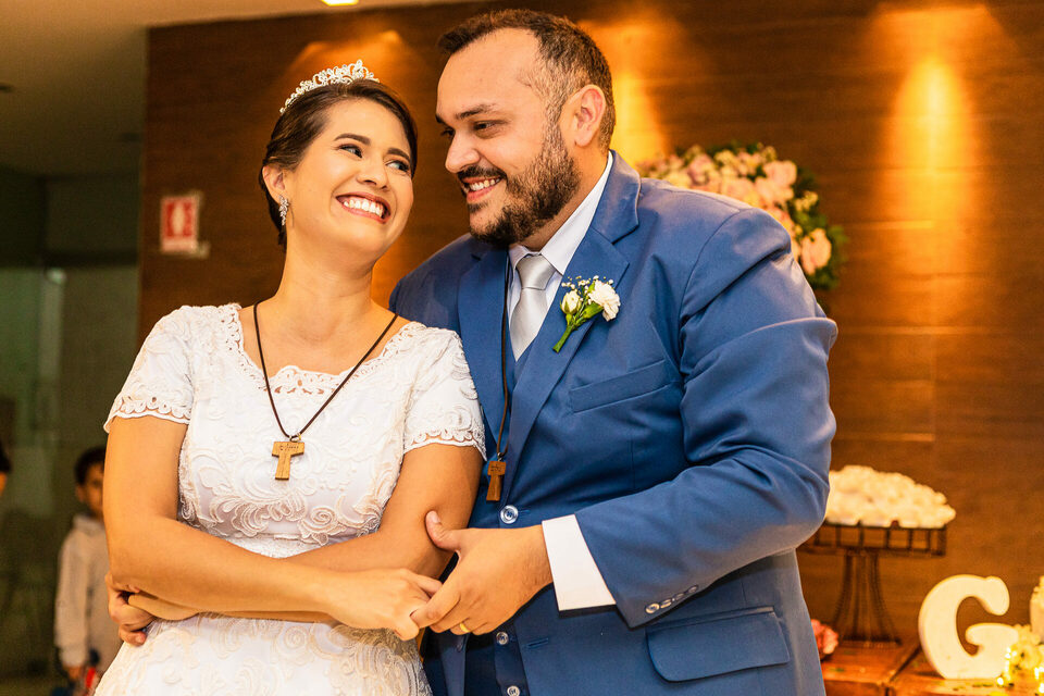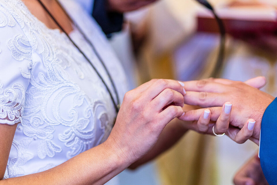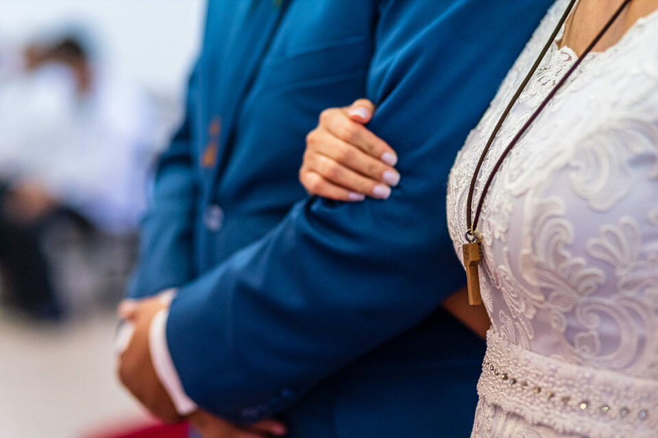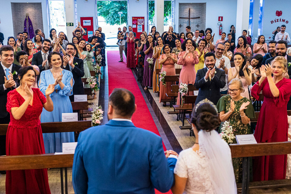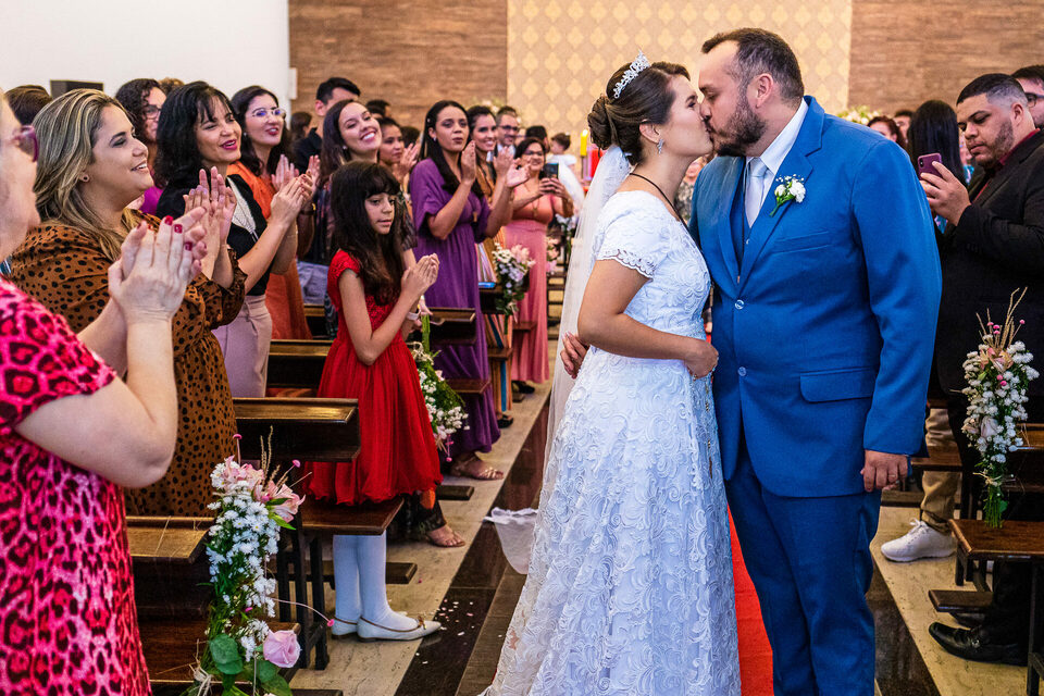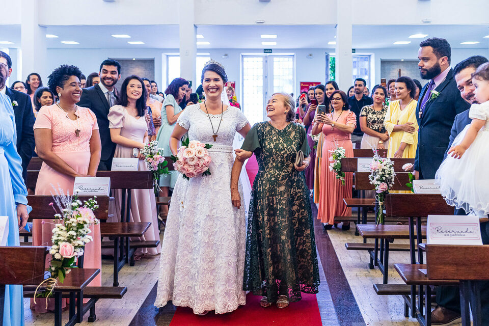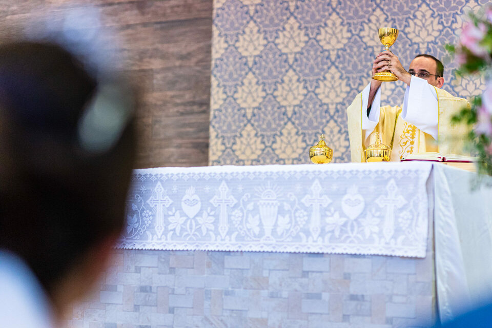 A cerimônia de casamento foi linda, dentro da Santa Missa e por uma graça especial, o evangelho do dia foi justamente as Bodas de Caná. É maravilhoso ver como Deus cuida de cada detalhe.