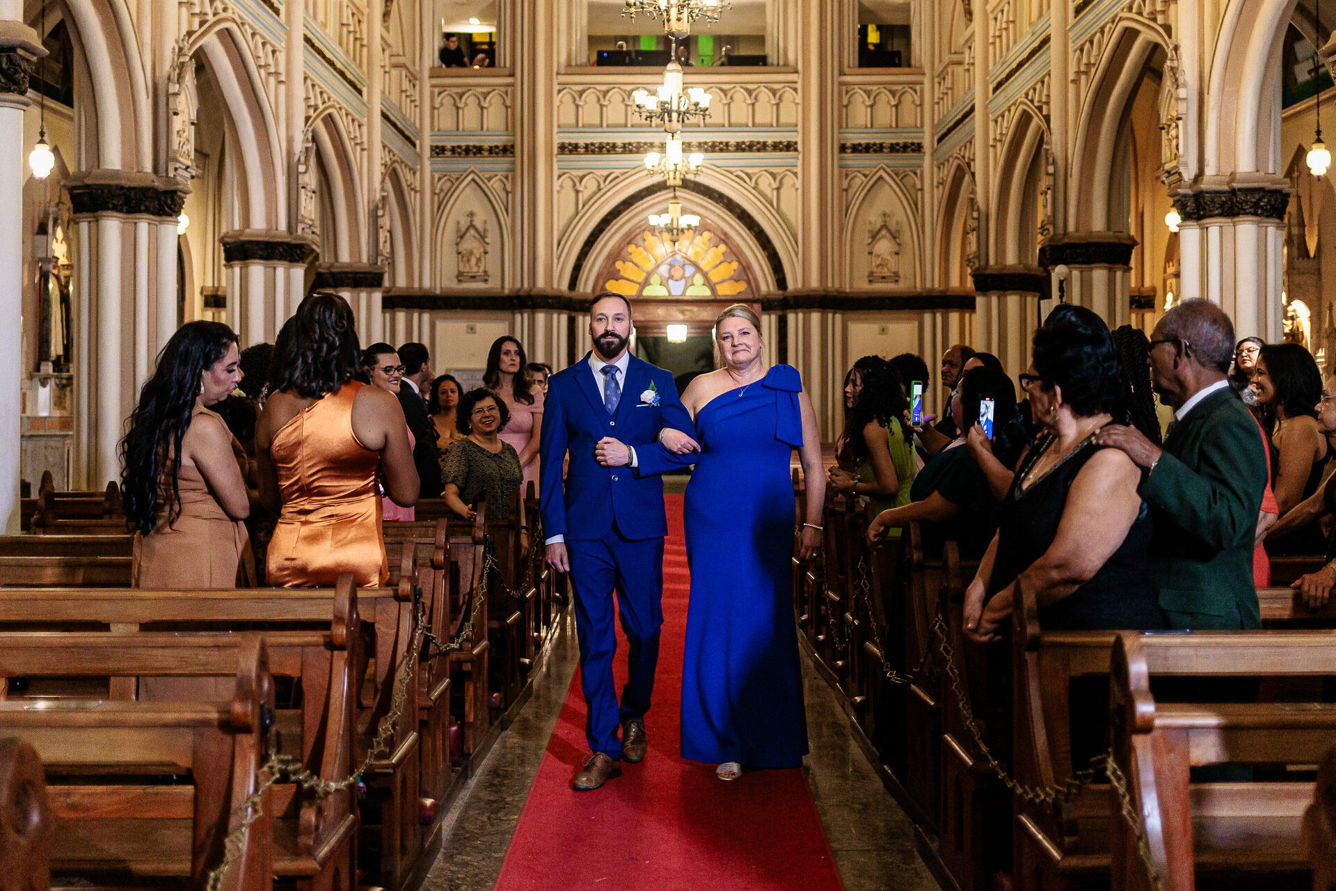 Casar na Basílica Nossa Senhora de Lourdes, uma das igrejas mais tradicionais de BH, trouxe à celebração um sentido profundo de espiritualidade. A arquitetura, os vitrais e o clima de oração conduziram os noivos e os convidados a uma verdadeira experiência de fé, tornando esse casamento católico internacional em Belo Horizonte ainda mais inesquecível.