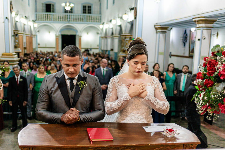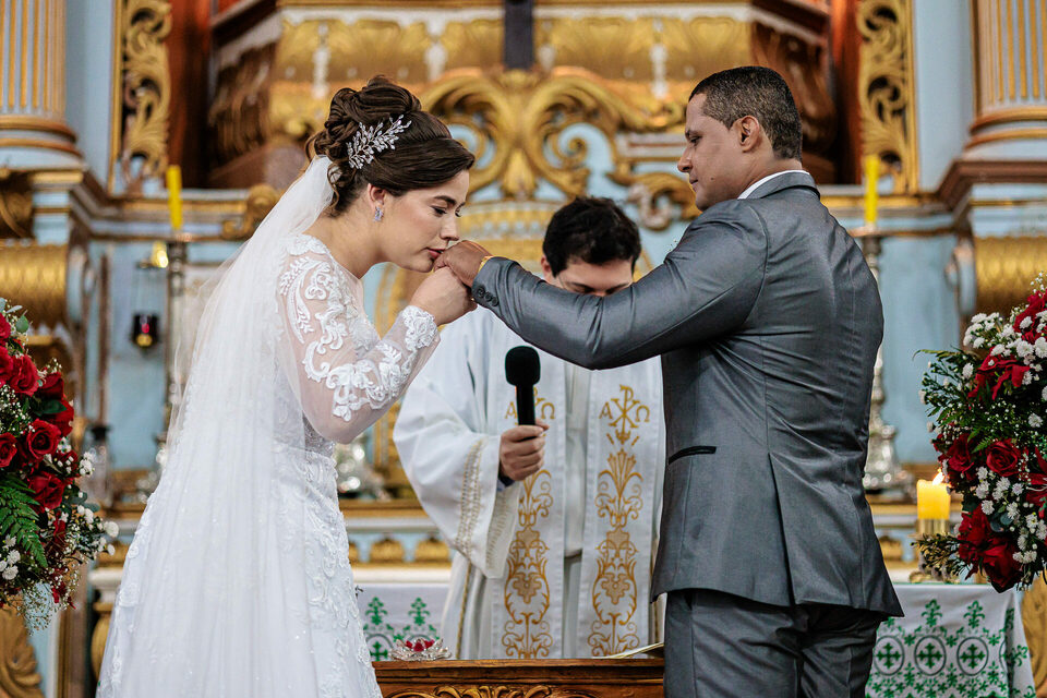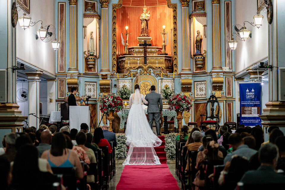 A cerimônia de casamento de Junia e Robson foi um testemunho vivo do amor e de fé. A Catedral Santo Antônio, com sua arquitetura imponente e atmosfera sagrada, proporcionou um cenário perfeito para este momento inesquecível. Sob a bênção de Deus, o casal trocou votos sinceros e emocionantes, prometendo amor eterno diante do altar.