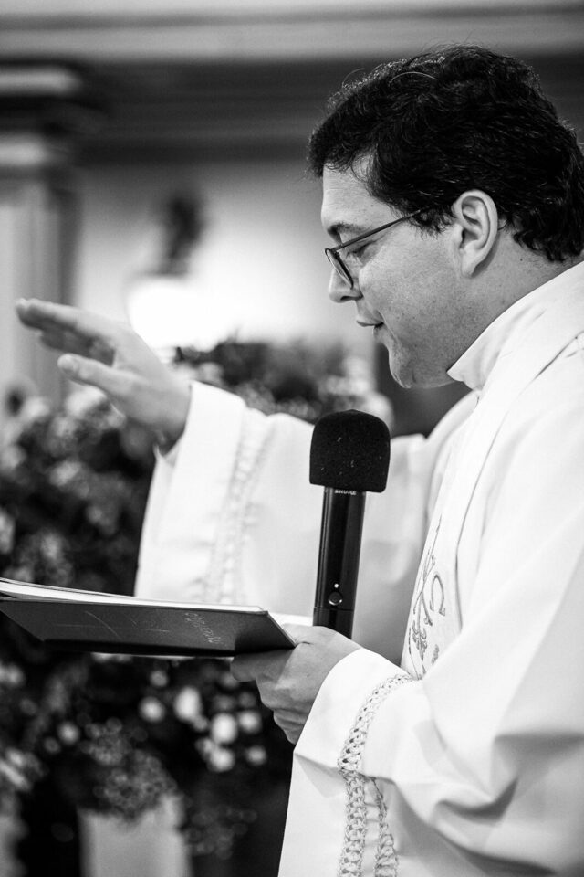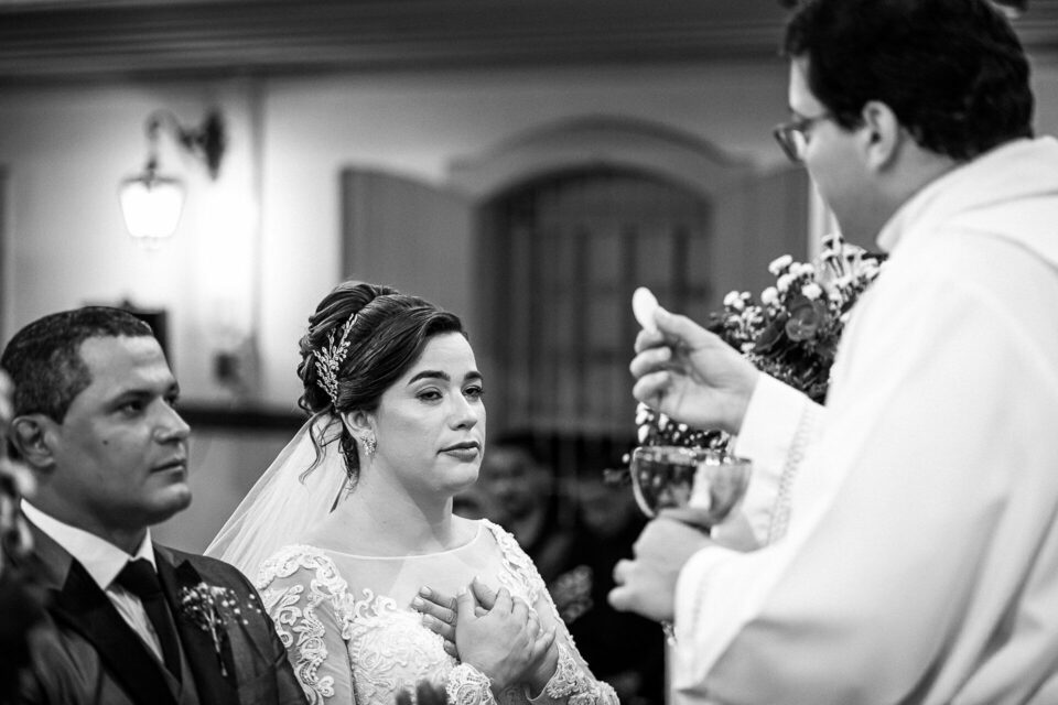 Cada momento da cerimônia foi cuidadosamente preparado para refletir a devoção do casal e a presença de Deus em suas vidas. A liturgia, os hinos e as preces, tudo foi conduzido com profunda reverência e espiritualidade. Foi um verdadeiro privilégio capturar a essência desse sacramento sagrado, onde o amor humano se encontra com o divino.