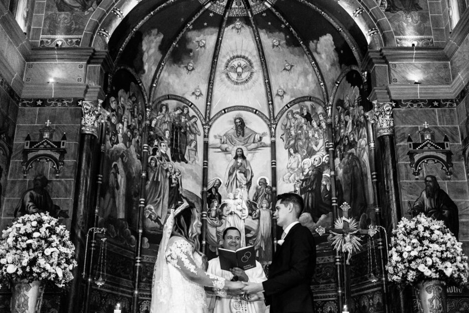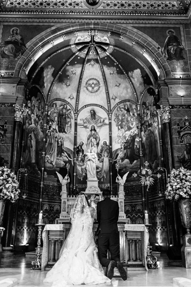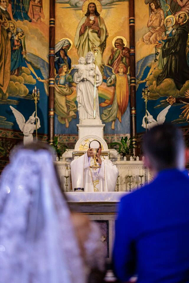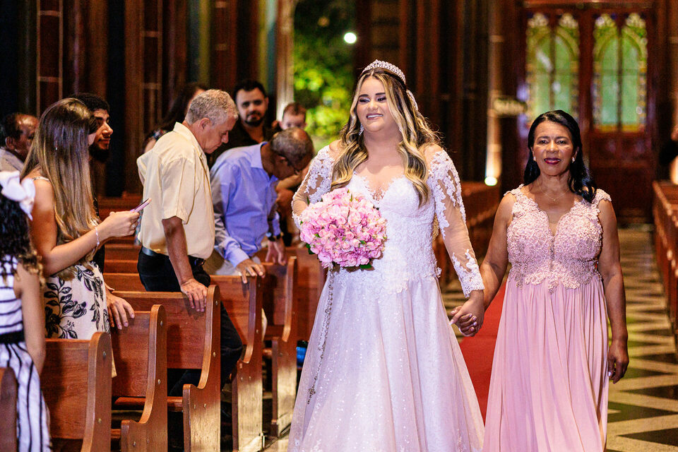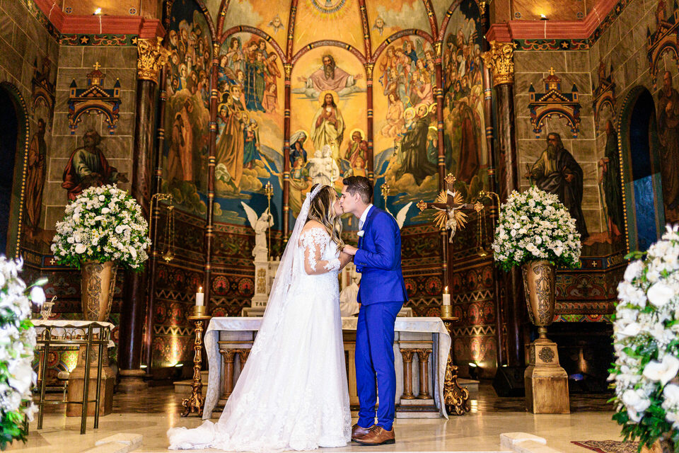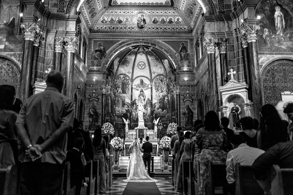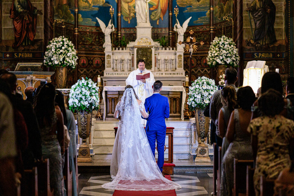 No majestoso altar da Igreja São José, em Belo Horizonte, presenciamos a sagrada união de Erica e Lucas, em uma cerimônia que abraçou a celebração eucarística, manifestando-se como um ato de fé e um profundo testemunho de amor.