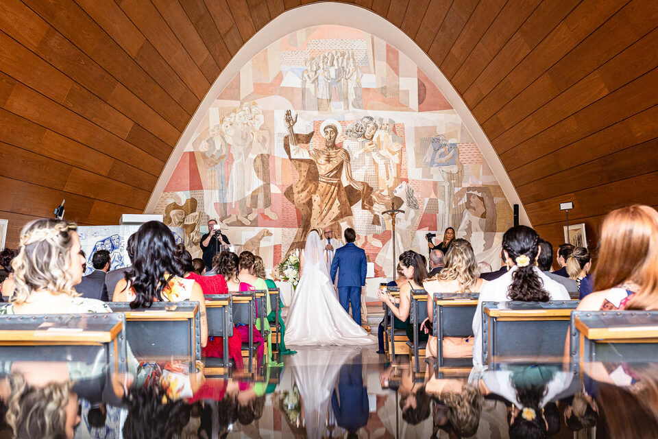 Um casamento lindo na Igrejinha da pampulha durante o dia e a recepção no restaurante Anella.
