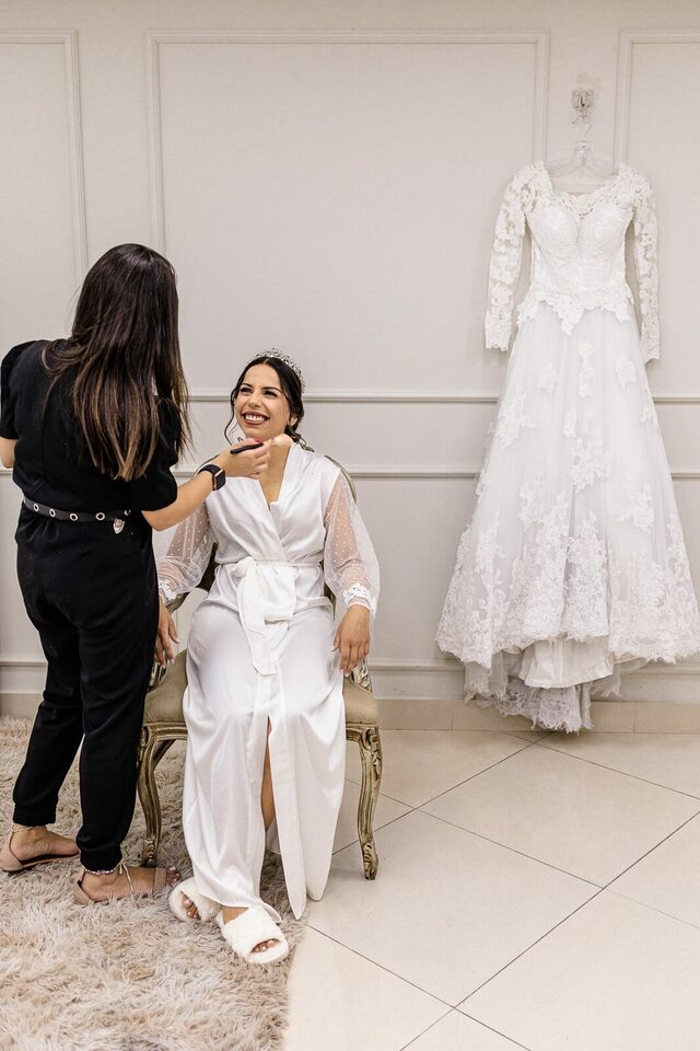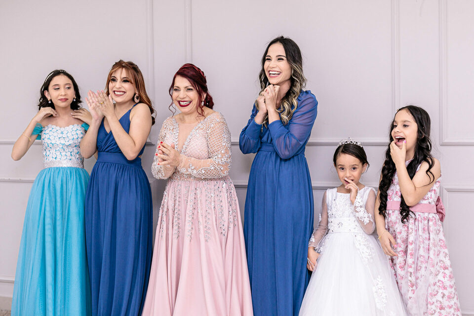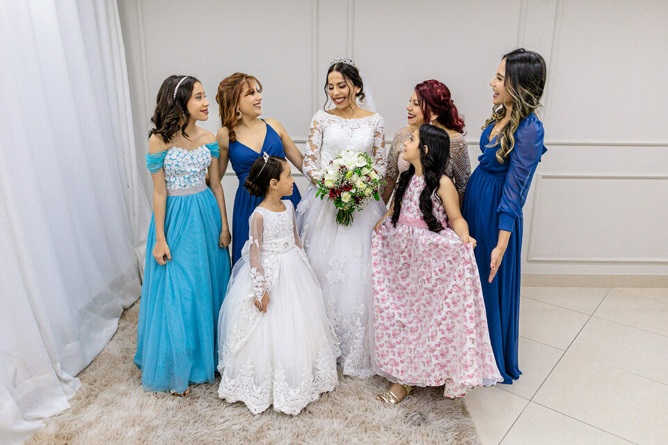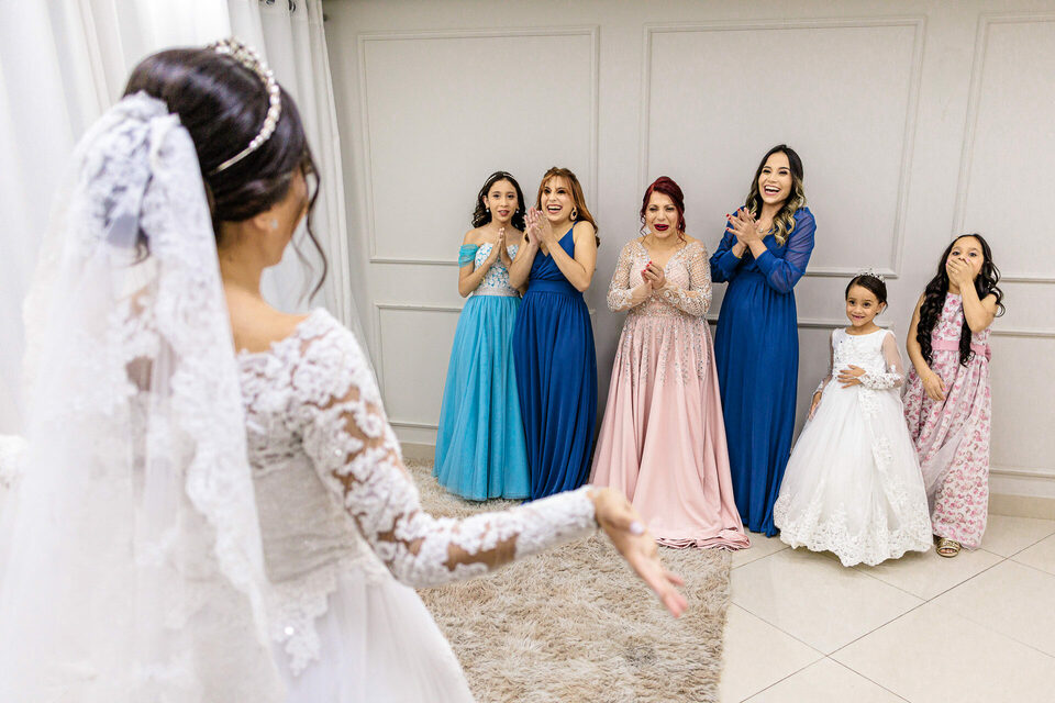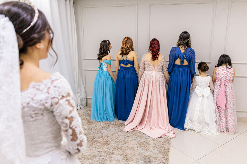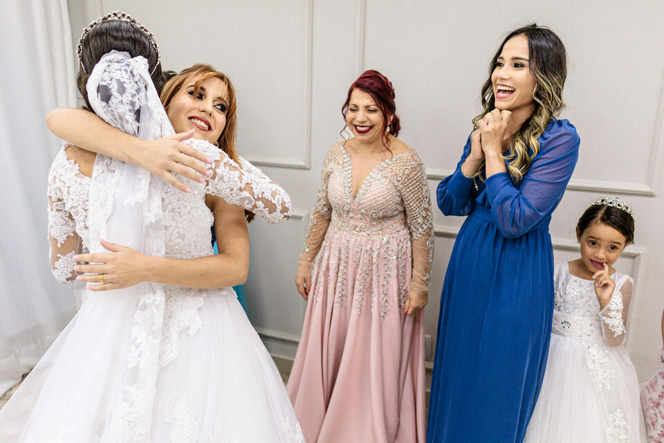Um dos momentos mais tocantes desse dia foi o primeiro encontro das irmãs. Nesse instante, emoção e genuína admiração se entrelaçaram. A mãe e as irmãs, com lágrimas nos olhos e corações radiantes, testemunharam Laura em toda a sua beleza nupcial. Foi um momento repleto de orgulho, amor e uma emocionante antecipação do que o porvir lhes reservava.