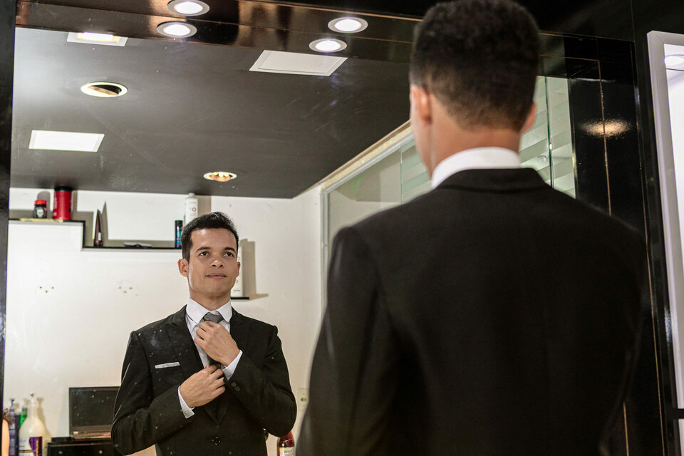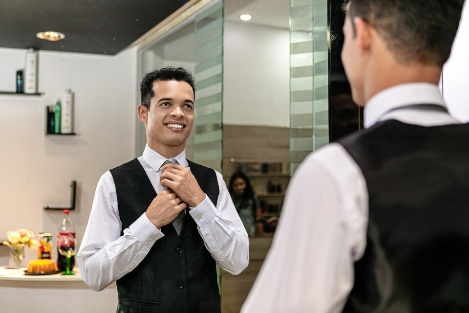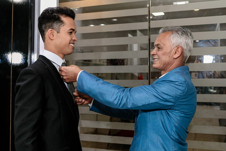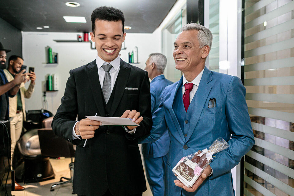 O encantamento desse momento especial começou a desdobrar-se nas primeiras horas do dia, à medida que os preparativos, cuidadosamente arquitetados, ganhavam vida. No Instituto de Beleza Teta, Allison estava mergulhado no processo de metamorfose. Acompanhado por seu pai e irmãos, o noivo compartilhava instantes de risos e memórias, fortalecendo os vínculos inquebrantáveis de uma família unida pelo amor e pela fé. Enquanto isso, no Espaço Hanna Quércia, Laura estava envolvida por uma atmosfera permeada de elegância e carinho.