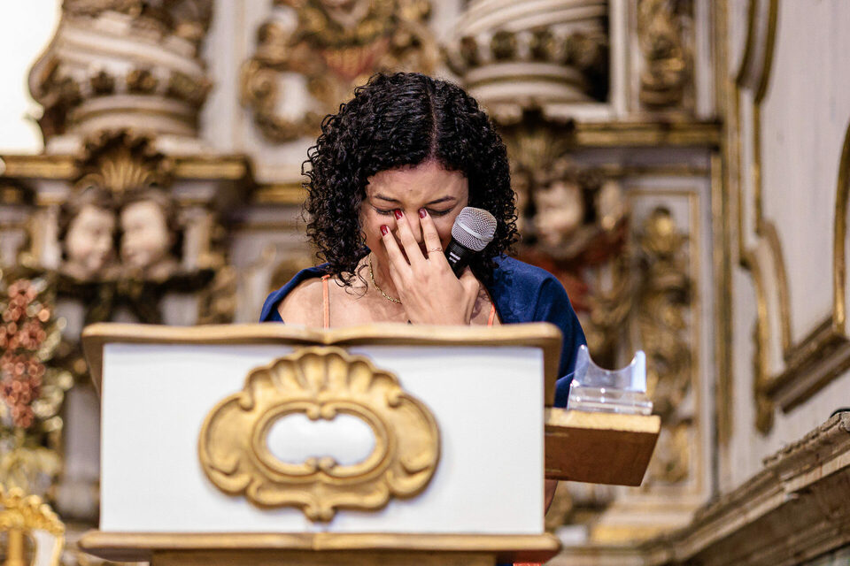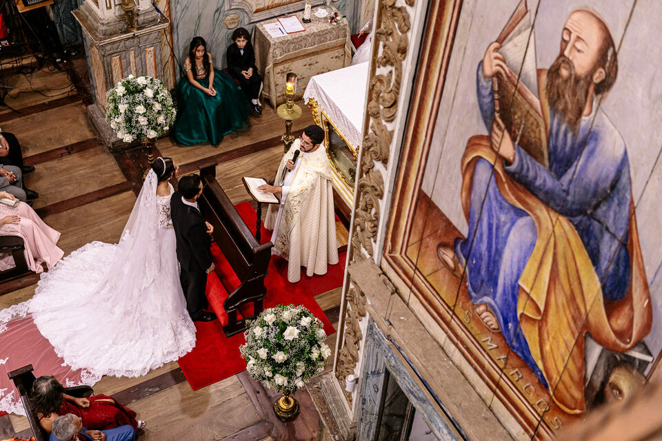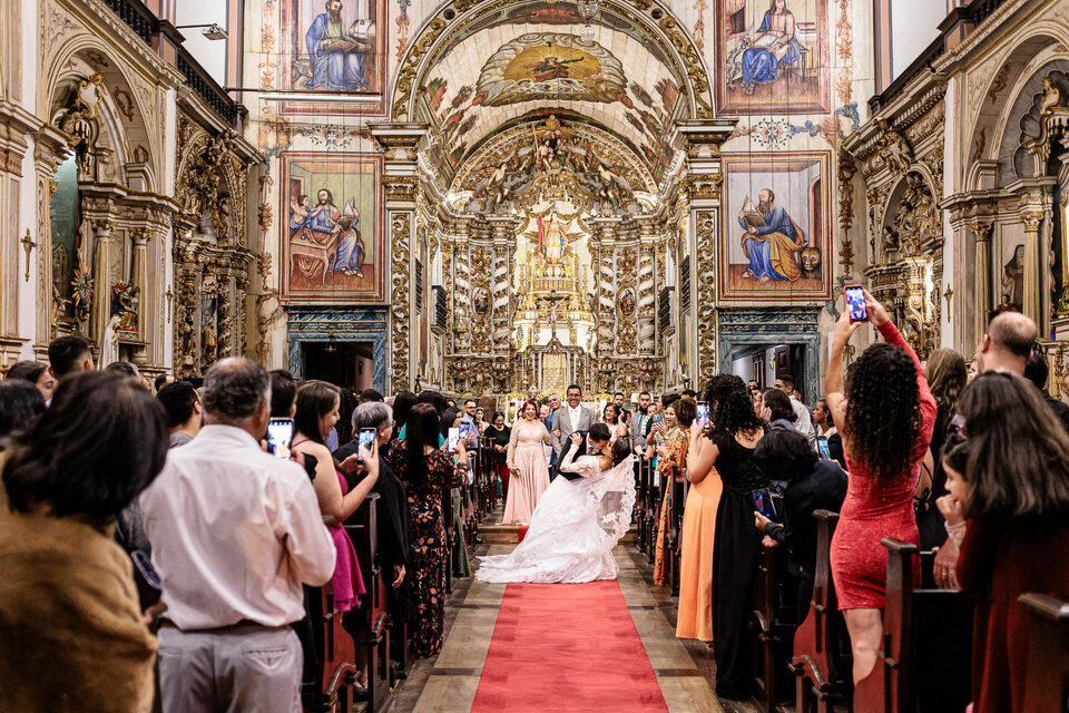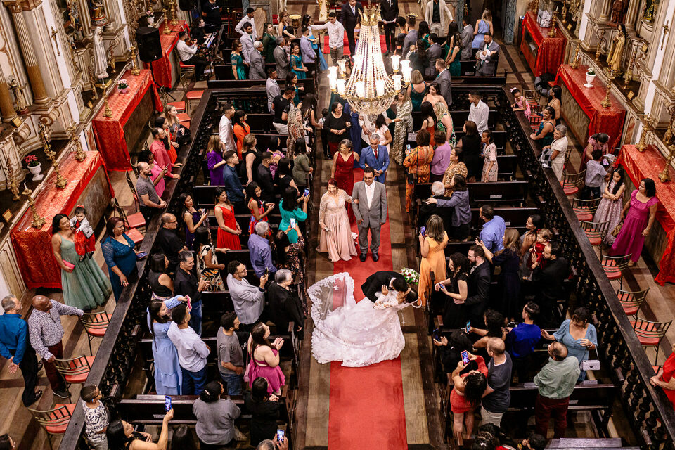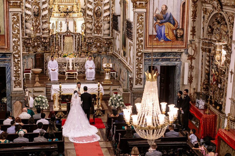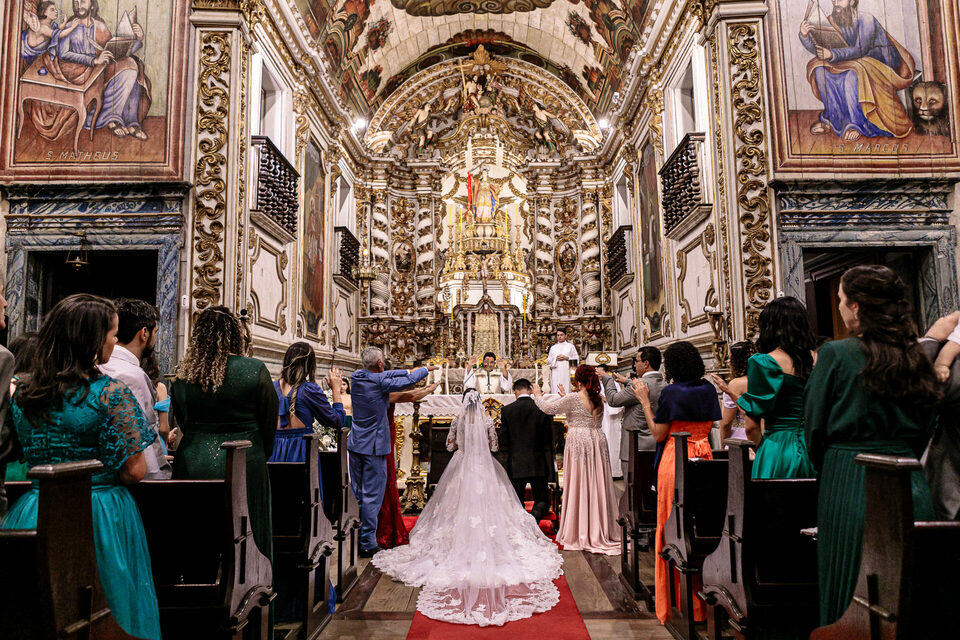 O grandioso interior da Igreja Matriz de Santa Luzia estava impregnado de uma atmosfera solene e inspiradora, enquanto entes queridos e amigos se reuniam para testemunhar a sacra união. A cerimônia honrava a jornada espiritual compartilhada por Laura e Allison, uma jornada de fé, superação e amor profundo. Enquanto lágrimas jubilosas percorriam os semblantes dos presentes, celebrava-se o enlace de duas almas que, unidas por Deus, se propunham a trilhar em conjunto a via da santidade.