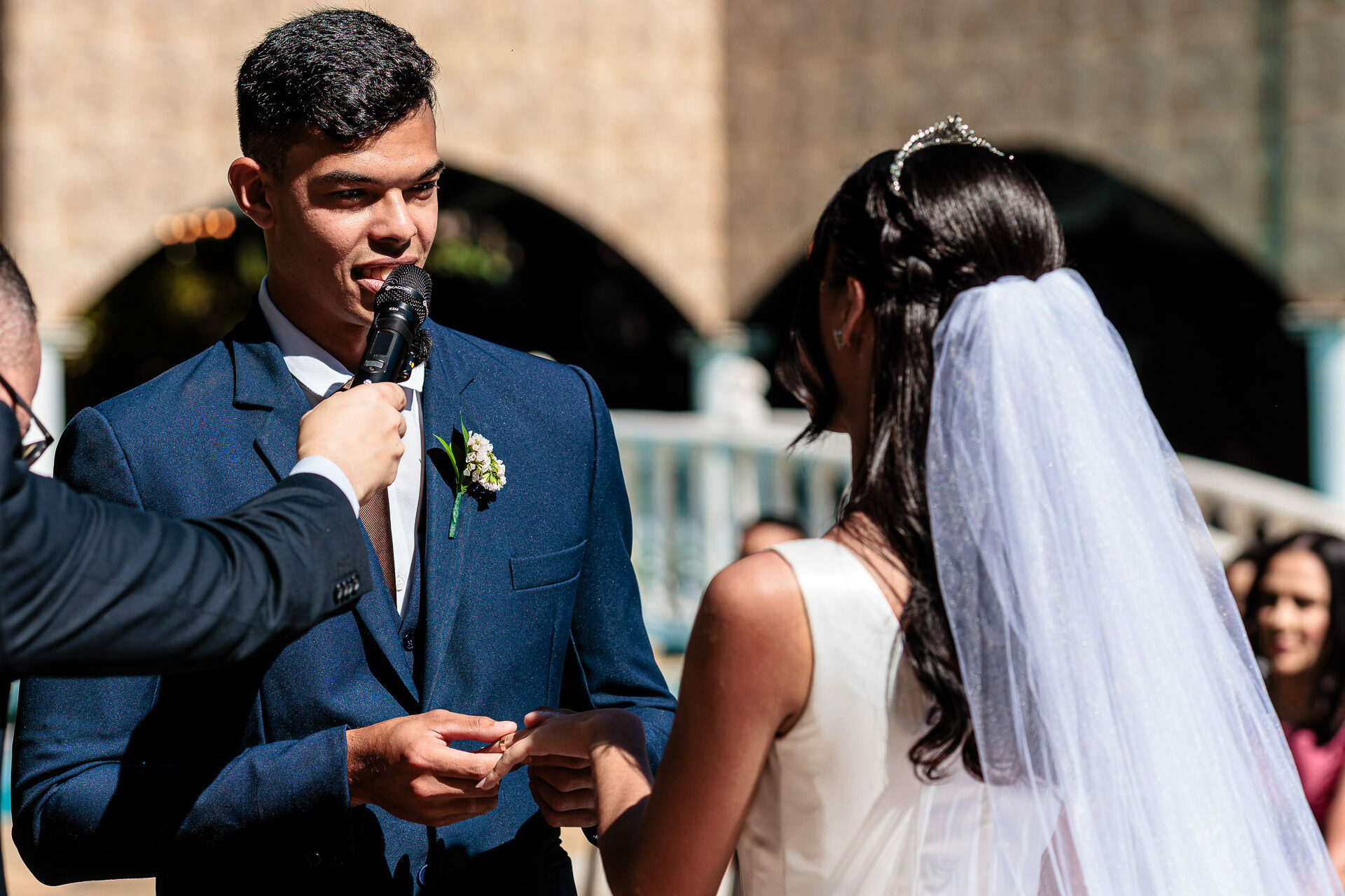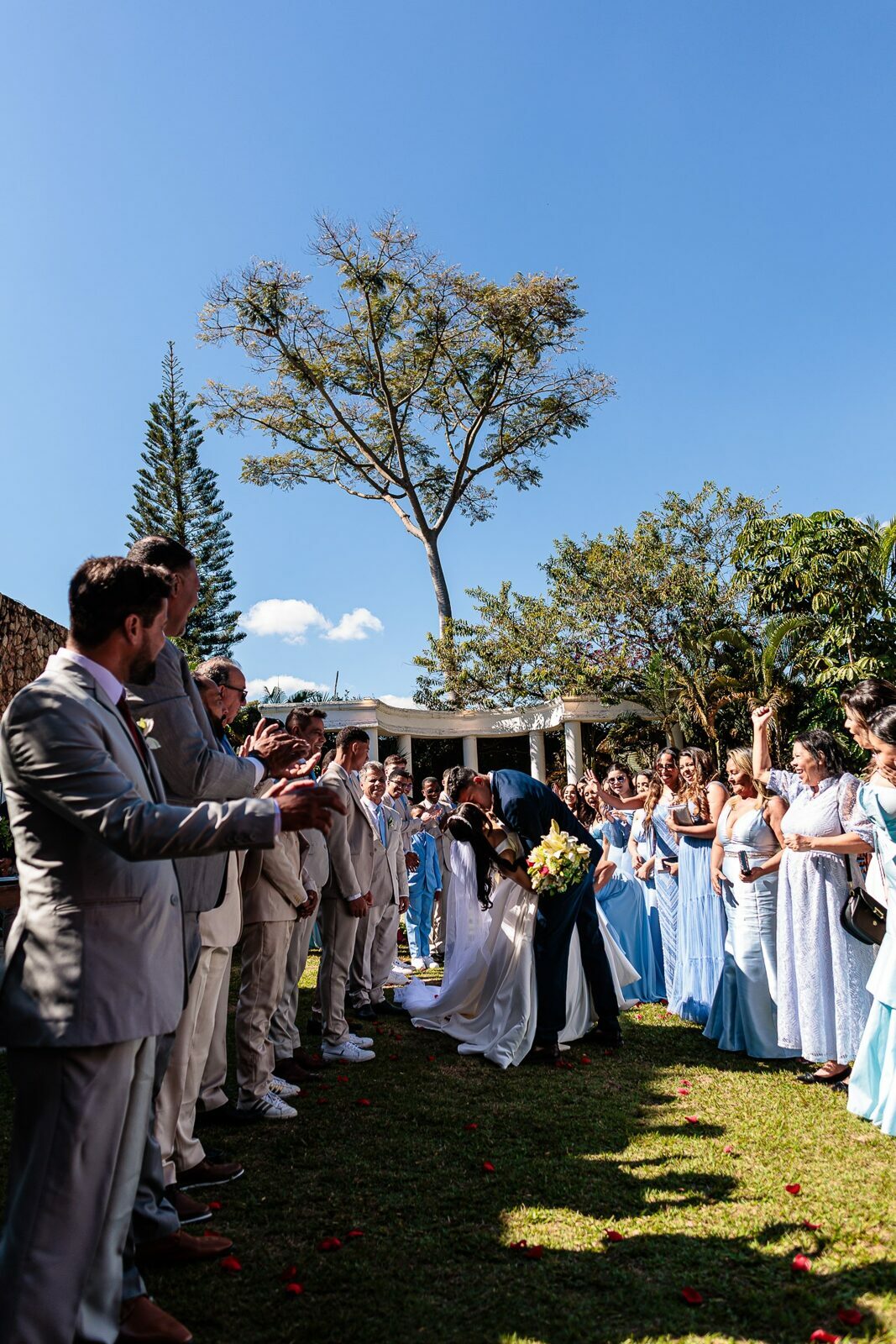 O casamento aconteceu no Espaço Helen Aguiar, em Belo Horizonte, em um dia lindo, de céu limpo e sorrisos largos. A cerimônia de casamento foi emocionante, daquelas que tocam o coração de quem está presente. Estavam ali as pessoas mais queridas da Gabi e do Thiago — amigos e familiares que acompanharam de perto a trajetória do casal, suas esperas, desafios e alegrias até o grande dia. Era possível ver nos olhos dos convidados o quanto aquele momento era esperado e celebrado por todos.